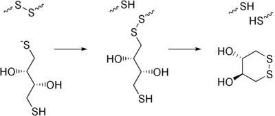 - Reducing agent: once oxidized, it forms a stable six-membered ring with an internal disulfide bond